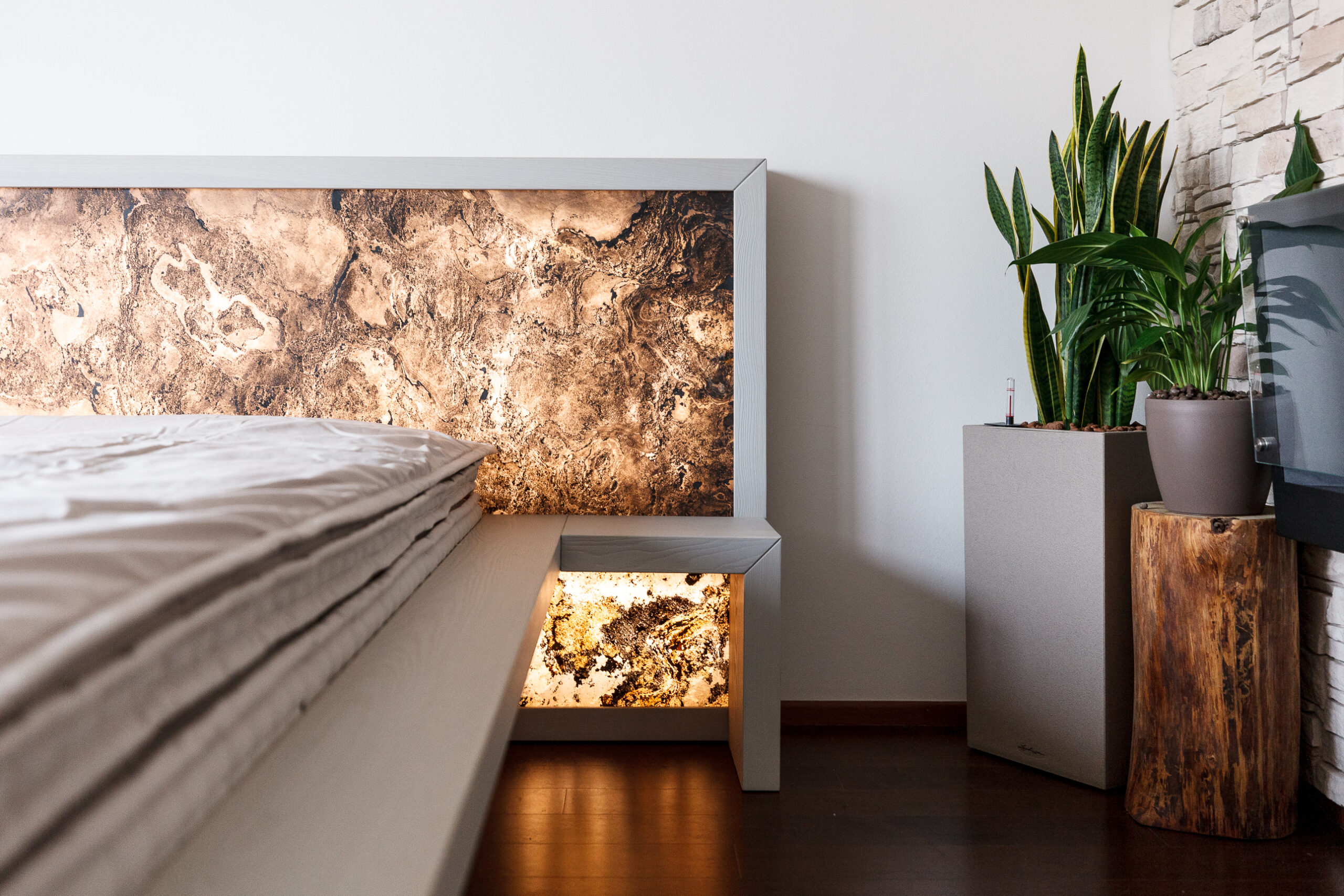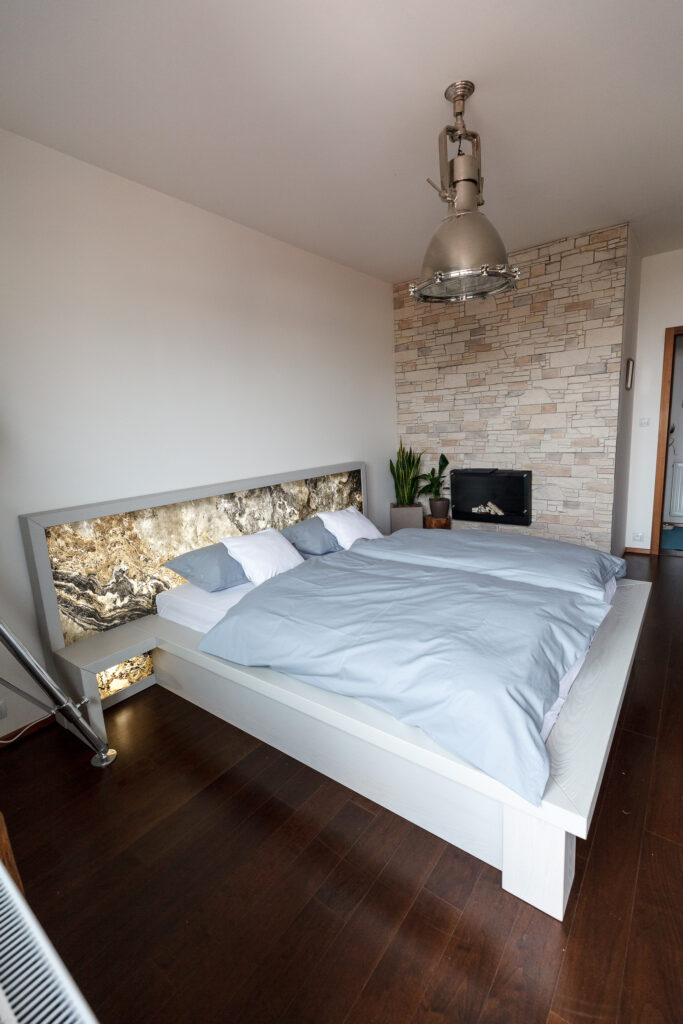 Vznikla z přírodních materiálů a precizního řemesla. Rám z masivního dřeva, kamenná dýha a jemné ambientní světlo vytvářejí harmonii, která se stane přirozeným středobodem ložnice. Součástí jsou 100% přírodní matrace z koňských žíní a kokosového vlákna, ručně vyráběné v Podkrkonoší, které zajišťují ergonomii, vzdušnost a dlouhodobé pohodlí.